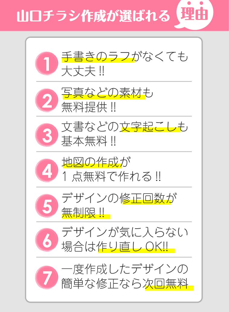 山口チラシ作成のチラシデザイン、チラシ作成、チラシ制作、チラシ印刷の強み